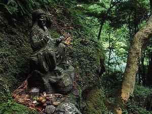 参道を登る私たちを石像の役行者が見守っています。