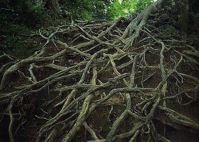 来るものを拒むかのように険しい木の根道が続く。