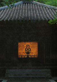 夕暮れに大堂内部をライトアップすると阿弥陀様がポツンと浮かび上がってとても素朴で美しい。まさに「浄土」。
