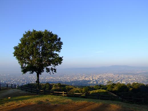 早朝、日が昇りだした頃「奈良奥山ドライブウェー」の展望台から若草山の山頂に登る。