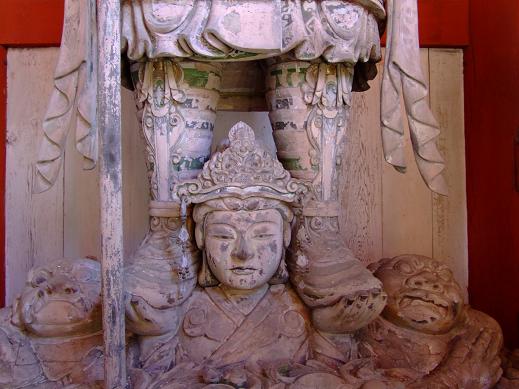 現在は四人とも前に向いていますが、以前(戦後くらいまで)は多宝塔、つまり壇上の中心を向いていたそうな。現在は前に向いているということは、広目天と多聞天の睨む先は…増長天や持国天になるので、「内輪モメや喧嘩にならないか心配ですね〜」って言うとオジサンはニコッと笑っていました。