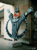 (左)駅の出口にあったカーニバルのキャラクター